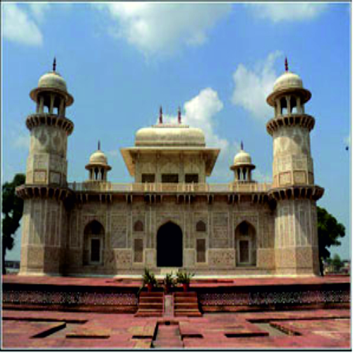 To the north of the Agra fort and across the river Yamuna are several fine examples of mughal architecture. The "itmad-ud-daula" was build by the empress Noor Jehan as a memorial to her father Mirza Ghiyas Beg. It is beautifully ornamented with pietra dura inlay and lattice work marble screens.