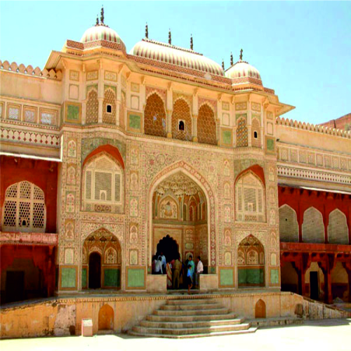 The Amber Fort set in picturesque and rugged hills is a fascinating blend of Hindu and Mughal architecture. Constructed by Raja Man Singh I in 1592 and completed by Mirja Raja Jai Singh the fort was made in red sand stone and white marble. The rugged forbidding exterior belies an inner paradise with a beautiful fusion of art and architecture. Amber is the classic and romantic fort-palace with a magnificent aura. The interior wall of the palace depicts expressive painting scenes with carvings, precious stones and mirror settings. In the foreground is the Maota Lake providing a breathtaking vista.