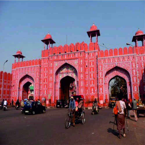 This famous city is the capital of Rajasthan and has earned universal renown as the " Pink City ", and pink it is, with beautiful constructed palaces, havelis and forts. Tall, rugged men with handle-bar whiskers sport bright pink turbans. Jaipur which means the city of victory was built exactly 273 years back and is 262 km by road from Delhi ( Capital of India ). A strong wall encircles the old city and even today has a suggestion of formidable strength, its function of protecting all within is obvious.